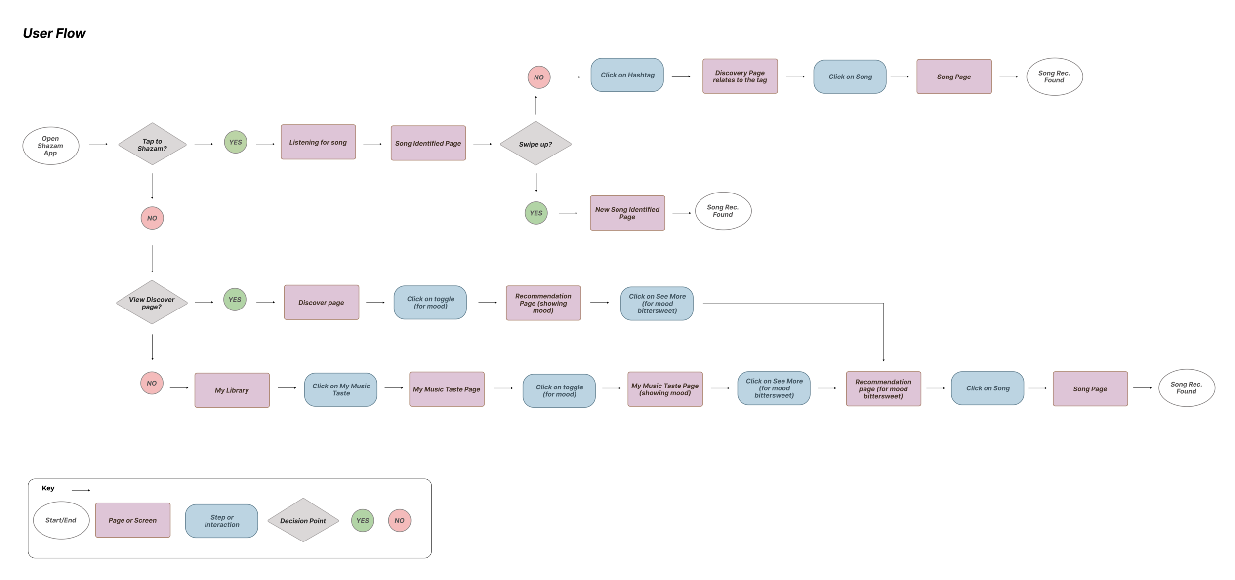Note: This project was a conceptual educational exercise to practice UX skills and is not affiliated with Shazam