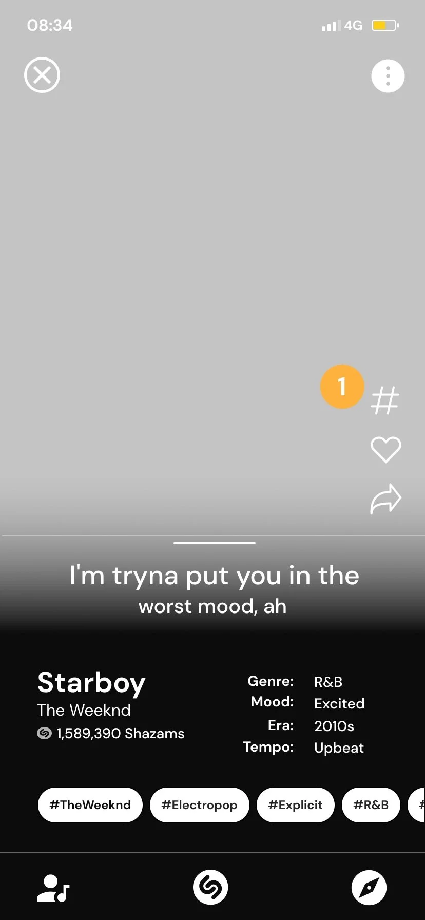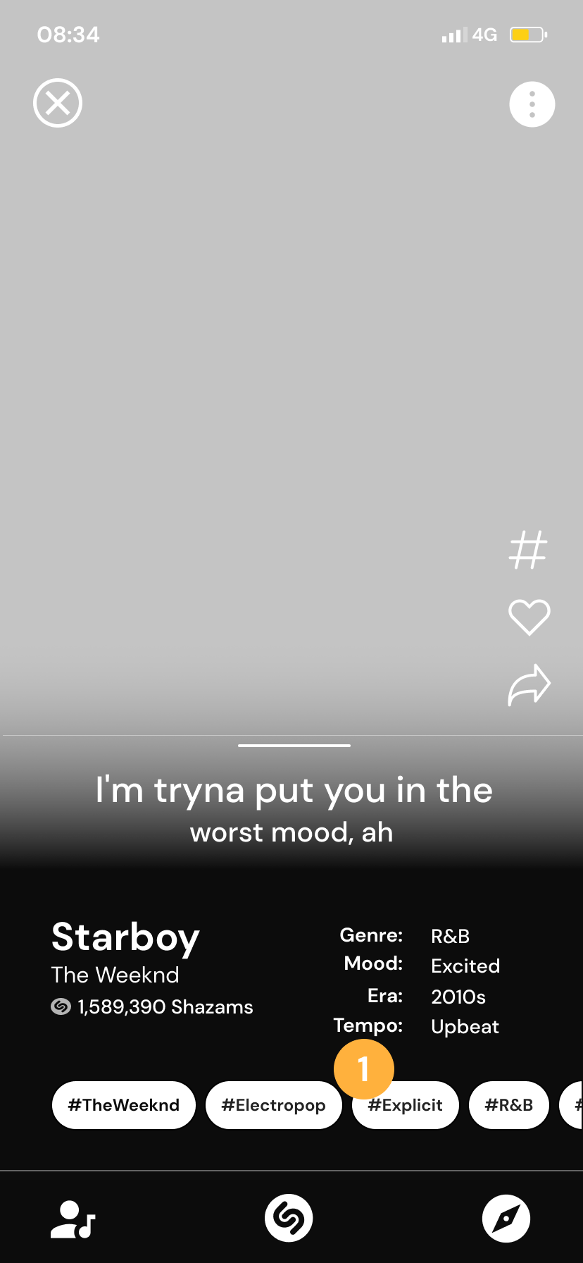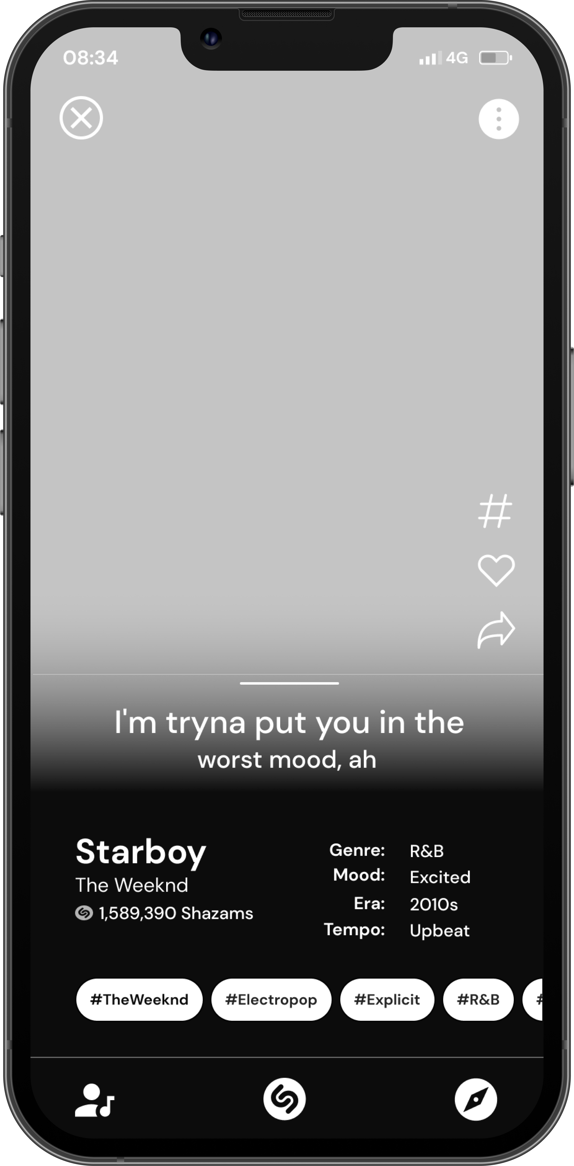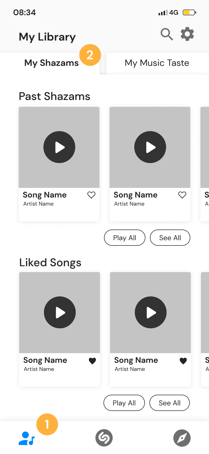 2. Users can toggle to the “My Shazams” tab to view their past shazam’ed songs and and liked songs